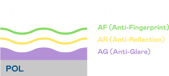 A.R.T.CG电子光电发展出独家的表面处理跟多层镀膜技术,,,,让外部光线照射到显示器表面时所产生的反射光大幅降低。。。 |
